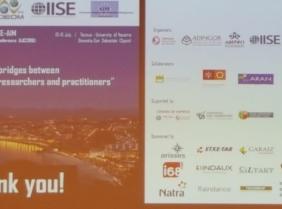 ABEPRO (Associação Brasileira de Engenharia de Produção), AIM (Academia Europea para la Gestión Industrial) y IISE (Instituto de Industrias de Ingenieros de Sistemas ), y que ha tenido lugar en TECNUN-Escuela de Ingeniería (San Sebastián, España) del 13 de julio-15 de 2016.