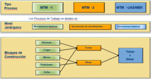 El método MTM continúa en constante desarrollo. Por lo tanto, el sistema básico MTM se conoció como MTM-1 y ahora forma la base para un gran número de desarrollos de datos estándar en todo el mundo. Bajo la dirección de la Asociación MTM de EE. UU., GPD (MTM General Purpose Data – 1963) se desarrolló y extendió por todo EE. UU. Sobre la base de la investigación relevante sobre la frecuencia de los movimientos, la Asociación Sueca de MTM desarrolló MTM-2 (1965), que desempeñó un papel importante en Escandinavia, Gran Bretaña y Francia. Más tarde, la Asociación Sueca de MTM desarrolló SAM (Análisis de Métodos y Actividad Secuencial), un sistema que permite a sus usuarios diseñar métodos de trabajo para una alta productividad total, documentar métodos de trabajo que pueden reproducirse con los resultados planificados en cualquier momento y establecer tiempos normales. Basado en estos métodos de trabajo documentados. Cada uno de estos sistemas fue desarrollado en base a varios principios de combinación de datos de bloques de movimientos.
